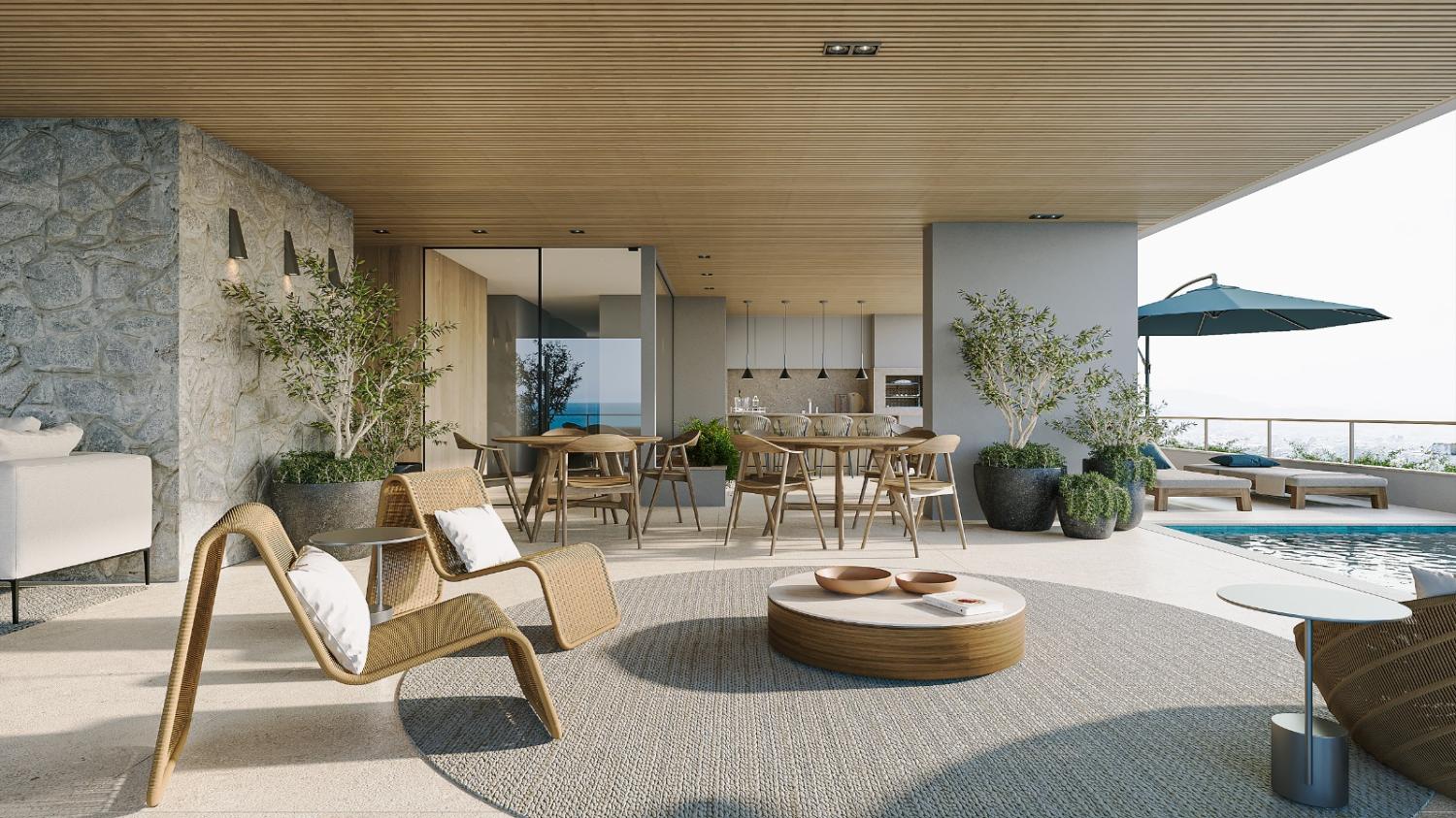 Duchas externas, Piscina e longe,  Pool bar, Spa, Lounge Mediterrâneo, Fire place, Mini Golf, Sala de jogos, Academia, Crossfit, Espaço Pet , Pet Care,