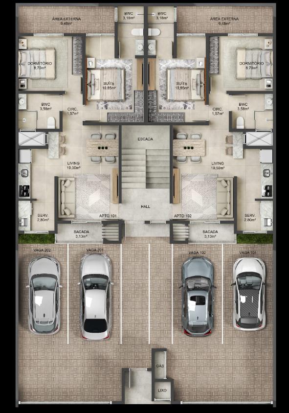 Com 1 suíte + 1 dormitório;