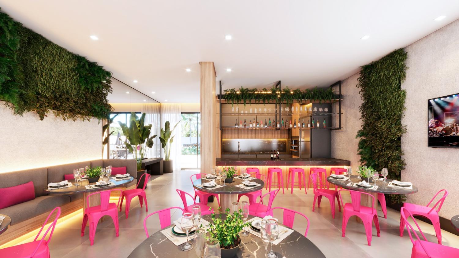Salão de jogos, Praça, Playground, Brinquedoteca, Mini quadra poliesportiva;