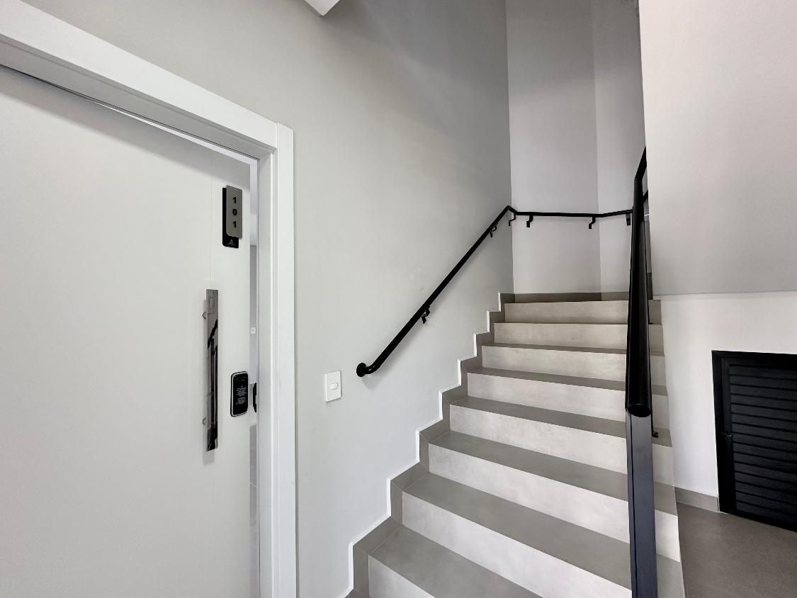 Fechadura eletrônica (porta de acesso aos apartamentos), garantindo segurança e praticidade;